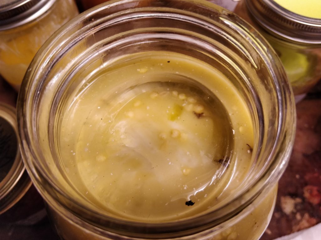 Something I should have done when I packed all of this in the jar is to add a weight on top to keep things better submerged, but at the time I had no glass weights left! I managed to scrounge one up, so hopefully the rest of the ferment should be relatively uneventful. I do expect more kham yeast, which is an early indicator that I probably need to watch out for mold.