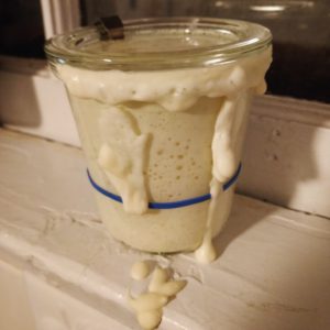 I keep my discard in a mason jar until I find a use for it. You can keep it in the fridge to slow down the lactic acid buildup, or leave it out on the counter to cultivate the sourness—either way, these crepes are a great way to use it up on a lazy Sunday morning.